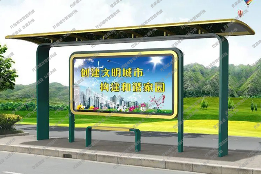 这款特色候车亭主体采用镀锌钢板结构,灯箱部分采用镀锌钢、不锈钢或铝型材材质,视窗面板采用钢化玻璃,灯箱内置LED灯、时控漏保、液压撑杆、颌及专用灯箱锁具,表面采用氟碳金属烤漆工艺。具有外形美观、表面耐腐蚀、抗风性能强、使用寿命长等优点。