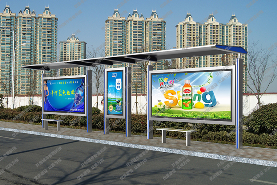 这款特色候车亭主体采用镀锌钢板结构,灯箱部分采用镀锌钢、不锈钢或铝型材材质,视窗面板采用钢化玻璃,灯箱内置LED灯、时控漏保、液压撑杆、颌及专用灯箱锁具,表面采用氟碳金属烤漆工艺。具有外形美观、表面耐腐蚀、抗风性能强、使用寿命长等优点。