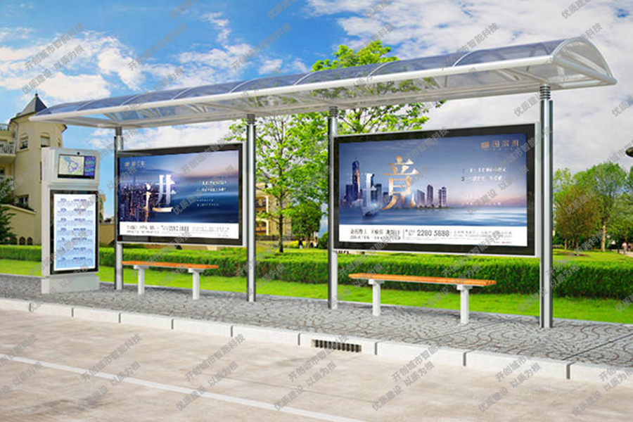 这款特色候车亭主体采用镀锌钢板结构,灯箱部分采用镀锌钢、不锈钢或铝型材材质,视窗面板采用钢化玻璃,灯箱内置LED灯、时控漏保、液压撑杆、颌及专用灯箱锁具,表面采用氟碳金属烤漆工艺。具有外形美观、表面耐腐蚀、抗风性能强、使用寿命长等优点。
