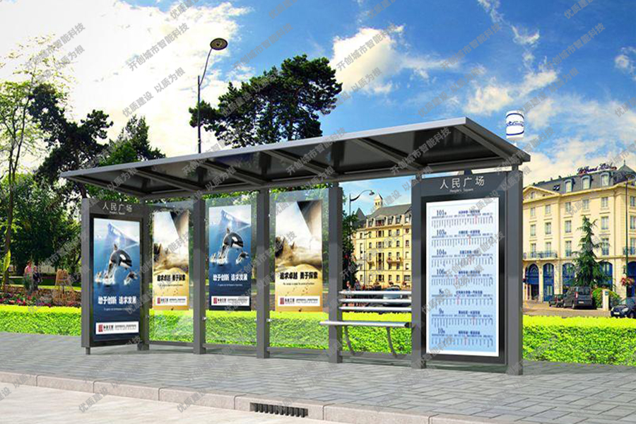 这款特色候车亭主体采用镀锌钢板结构,灯箱部分采用镀锌钢、不锈钢或铝型材材质,视窗面板采用钢化玻璃,灯箱内置LED灯、时控漏保、液压撑杆、颌及专用灯箱锁具,表面采用氟碳金属烤漆工艺。具有外形美观、表面耐腐蚀、抗风性能强、使用寿命长等优点。