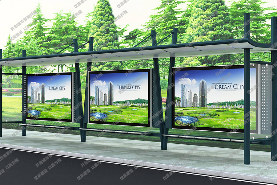 这款特色候车亭主体采用镀锌钢板结构,灯箱部分采用镀锌钢、不锈钢或铝型材材质,视窗面板采用钢化玻璃,灯箱内置LED灯、时控漏保、液压撑杆、颌及专用灯箱锁具,表面采用氟碳金属烤漆工艺。具有外形美观、表面耐腐蚀、抗风性能强、使用寿命长等优点。