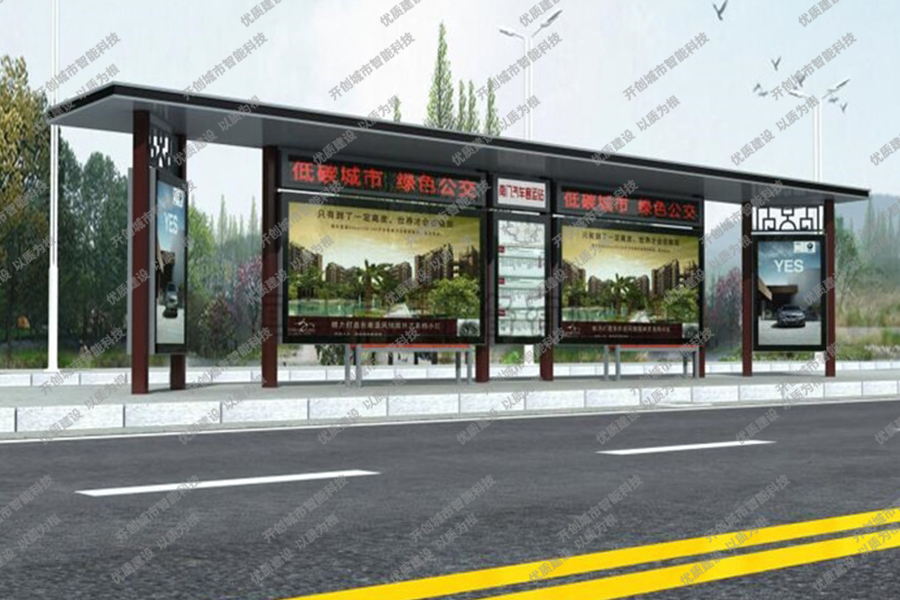 这款特色候车亭主体采用镀锌钢板结构,灯箱部分采用镀锌钢、不锈钢或铝型材材质,视窗面板采用钢化玻璃,灯箱内置LED灯、时控漏保、液压撑杆、颌及专用灯箱锁具,表面采用氟碳金属烤漆工艺。具有外形美观、表面耐腐蚀、抗风性能强、使用寿命长等优点。