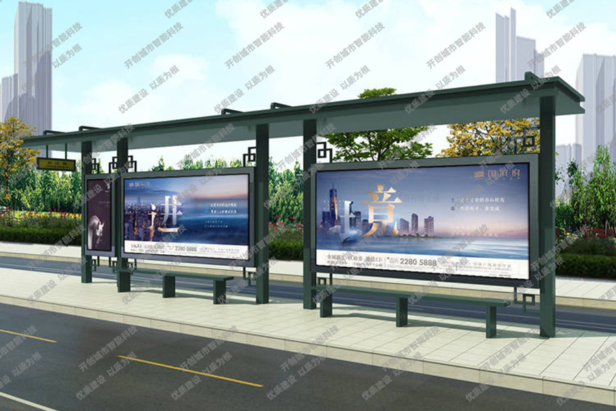 这款特色候车亭主体采用镀锌钢板结构,灯箱部分采用镀锌钢、不锈钢或铝型材材质,视窗面板采用钢化玻璃,灯箱内置LED灯、时控漏保、液压撑杆、颌及专用灯箱锁具,表面采用氟碳金属烤漆工艺。具有外形美观、表面耐腐蚀、抗风性能强、使用寿命长等优点。