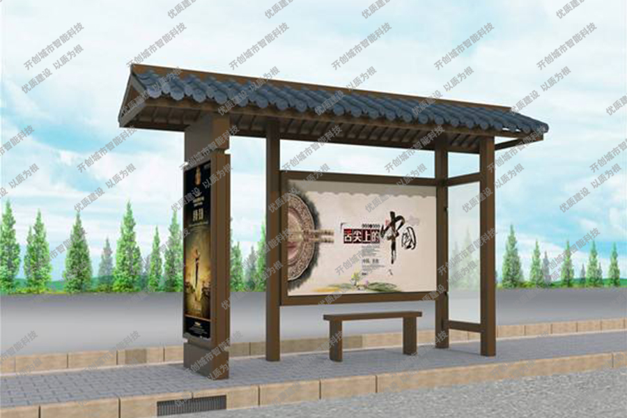 这款特色候车亭主体采用镀锌钢板结构,灯箱部分采用镀锌钢、不锈钢或铝型材材质,视窗面板采用钢化玻璃,灯箱内置LED灯、时控漏保、液压撑杆、颌及专用灯箱锁具,表面采用氟碳金属烤漆工艺。具有外形美观、表面耐腐蚀、抗风性能强、使用寿命长等优点。