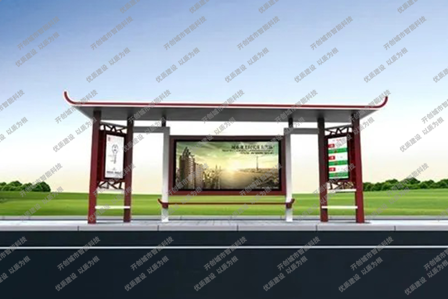 这款特色候车亭主体采用镀锌钢板结构,灯箱部分采用镀锌钢、不锈钢或铝型材材质,视窗面板采用钢化玻璃,灯箱内置LED灯、时控漏保、液压撑杆、颌及专用灯箱锁具,表面采用氟碳金属烤漆工艺。具有外形美观、表面耐腐蚀、抗风性能强、使用寿命长等优点。