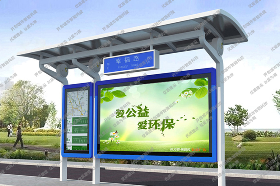 这款特色候车亭主体采用镀锌钢板结构,灯箱部分采用镀锌钢、不锈钢或铝型材材质,视窗面板采用钢化玻璃,灯箱内置LED灯、时控漏保、液压撑杆、颌及专用灯箱锁具,表面采用氟碳金属烤漆工艺。具有外形美观、表面耐腐蚀、抗风性能强、使用寿命长等优点。