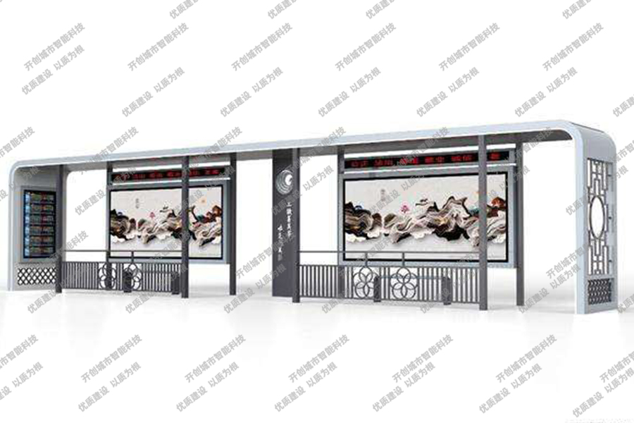 这款特色候车亭主体采用镀锌钢板结构,灯箱部分采用镀锌钢、不锈钢或铝型材材质,视窗面板采用钢化玻璃,灯箱内置LED灯、时控漏保、液压撑杆、颌及专用灯箱锁具,表面采用氟碳金属烤漆工艺。具有外形美观、表面耐腐蚀、抗风性能强、使用寿命长等优点。