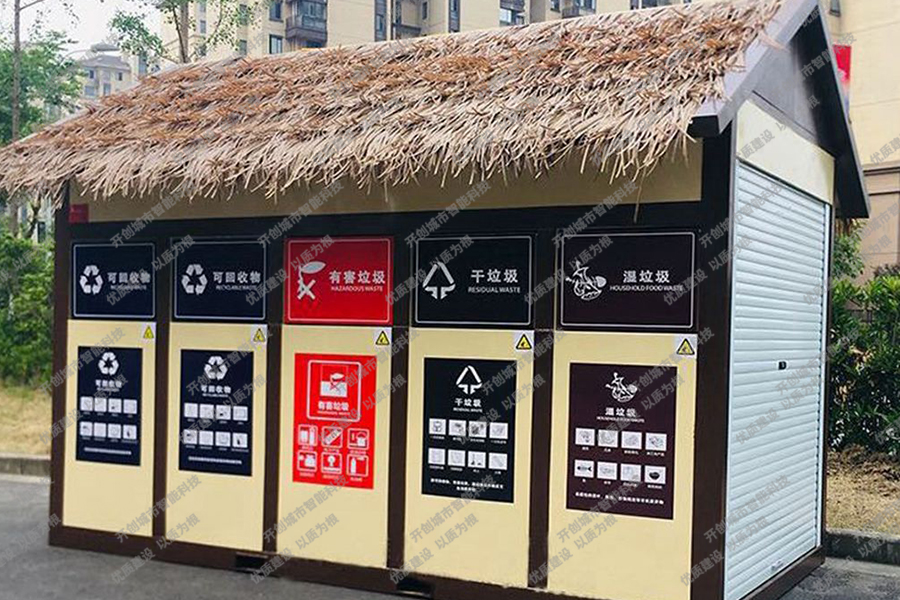 3、顶部:垃圾房顶部采用镀锌方管焊接而成,外包1.2mm镀锌钢板折弯件,内置保温板。采用特殊防水较接工艺,解除漏水之患;内顶标准PVC扣板吊顶或选择铝扣板及其它定制内饰;